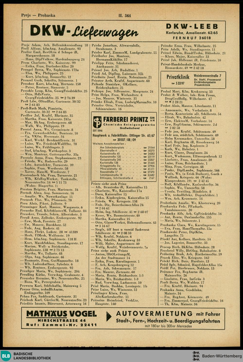 Abteilung II: Namensverzeichnis der Einwohner (Haushaltsvorstände, Firmen, Handel-...