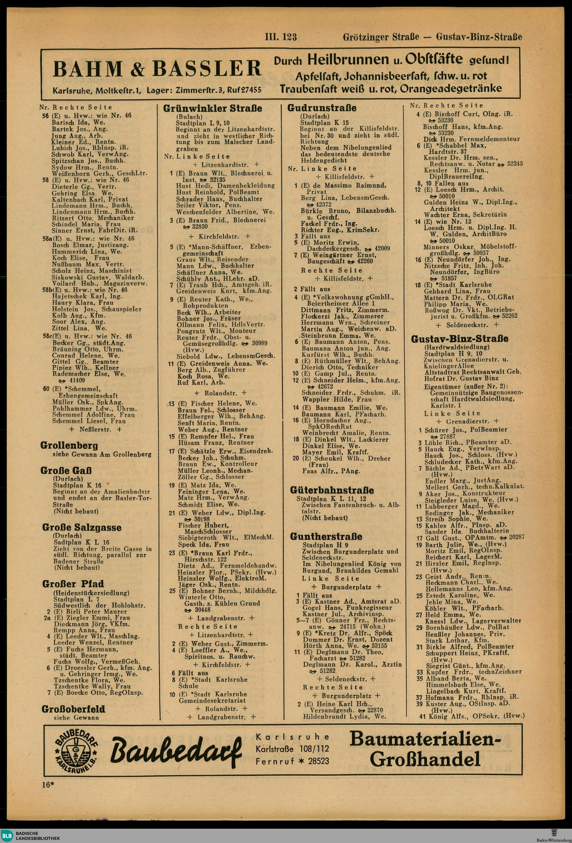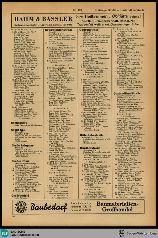 Adressbuch der Stadt Karlsruhe