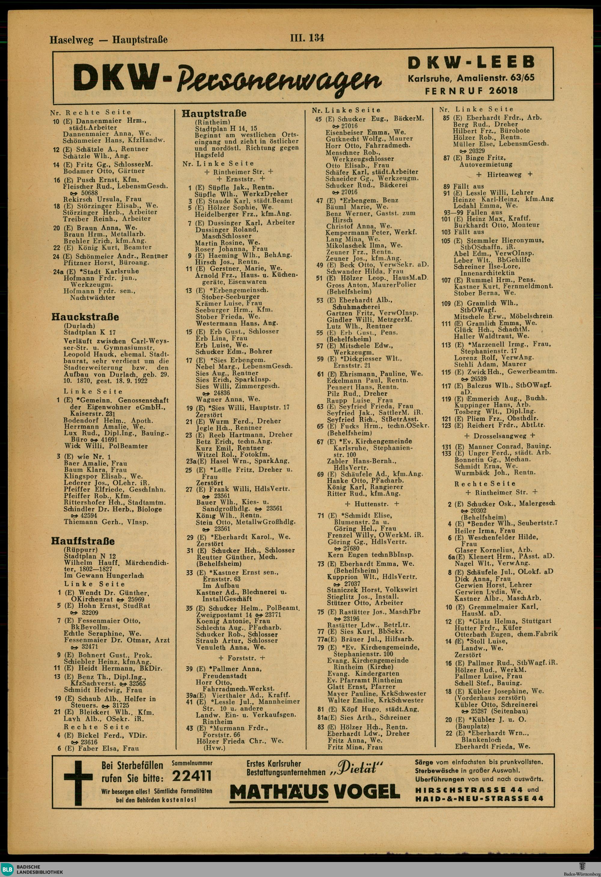 Adressbuch der Stadt Karlsruhe