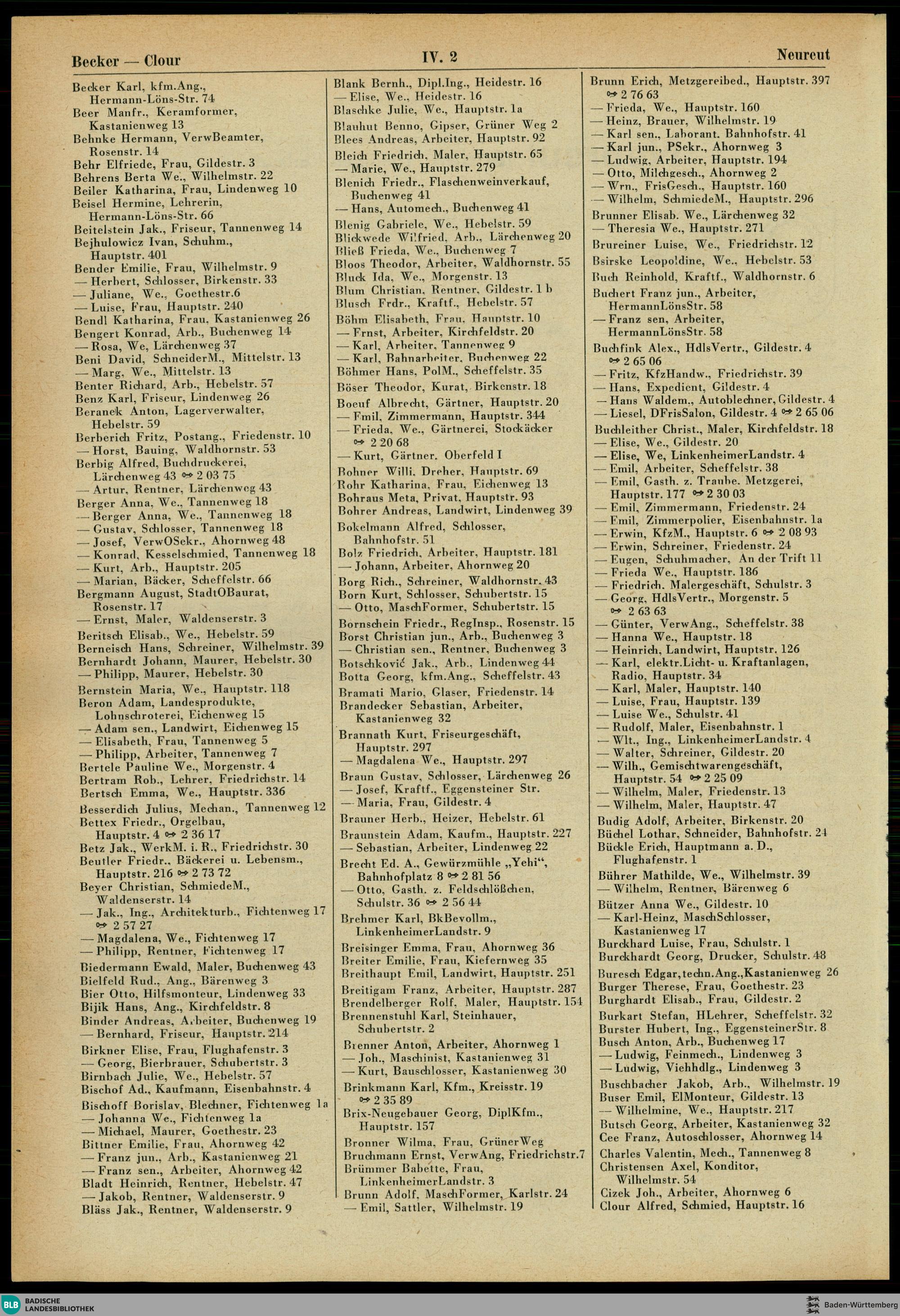 Abteilung IV: Gemeinde Neureut (Landkreis Karlsruhe): Namen- und Häuserverzeichn...