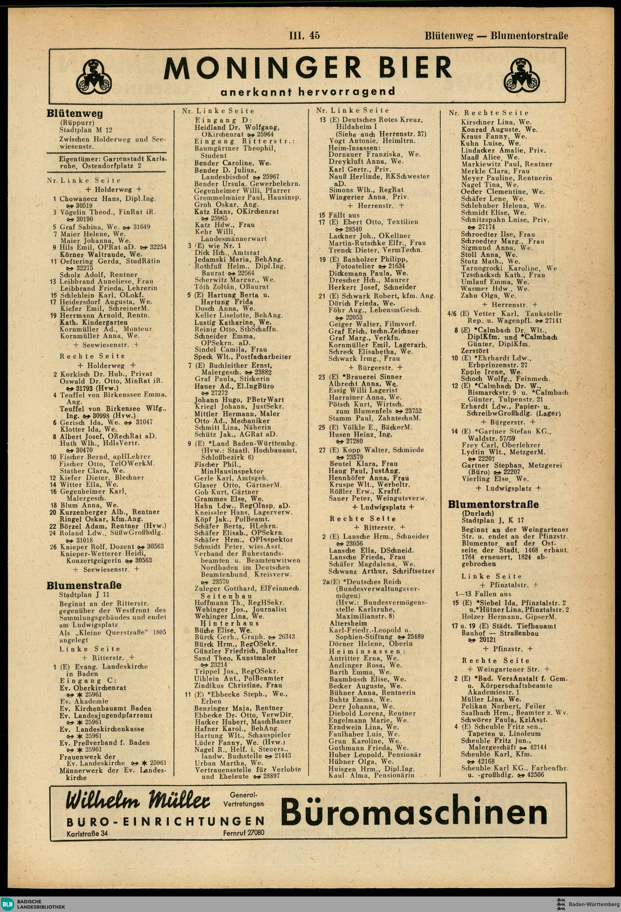Adressbuch der Stadt Karlsruhe
