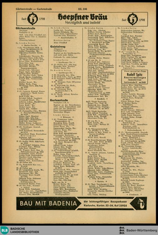 Adressbuch der Stadt Karlsruhe