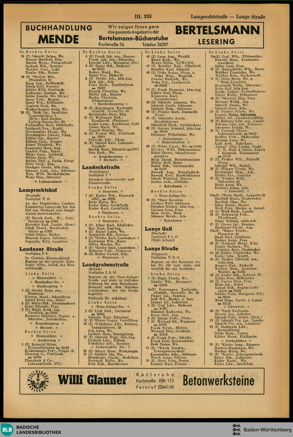 Adressbuch der Stadt Karlsruhe