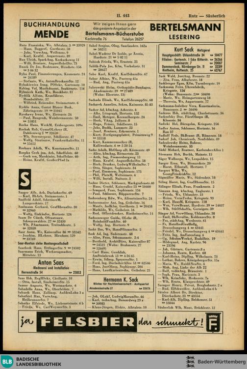Abteilung II: Namenverzeichnis der Einwohner (Haushaltungsvorstände, Firmen, Handel-...