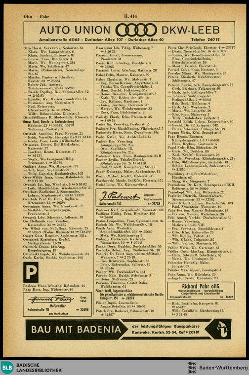 Abteilung II: Namenverzeichnis der Einwohner (Haushaltungsvorstände, Firmen, Handel-...