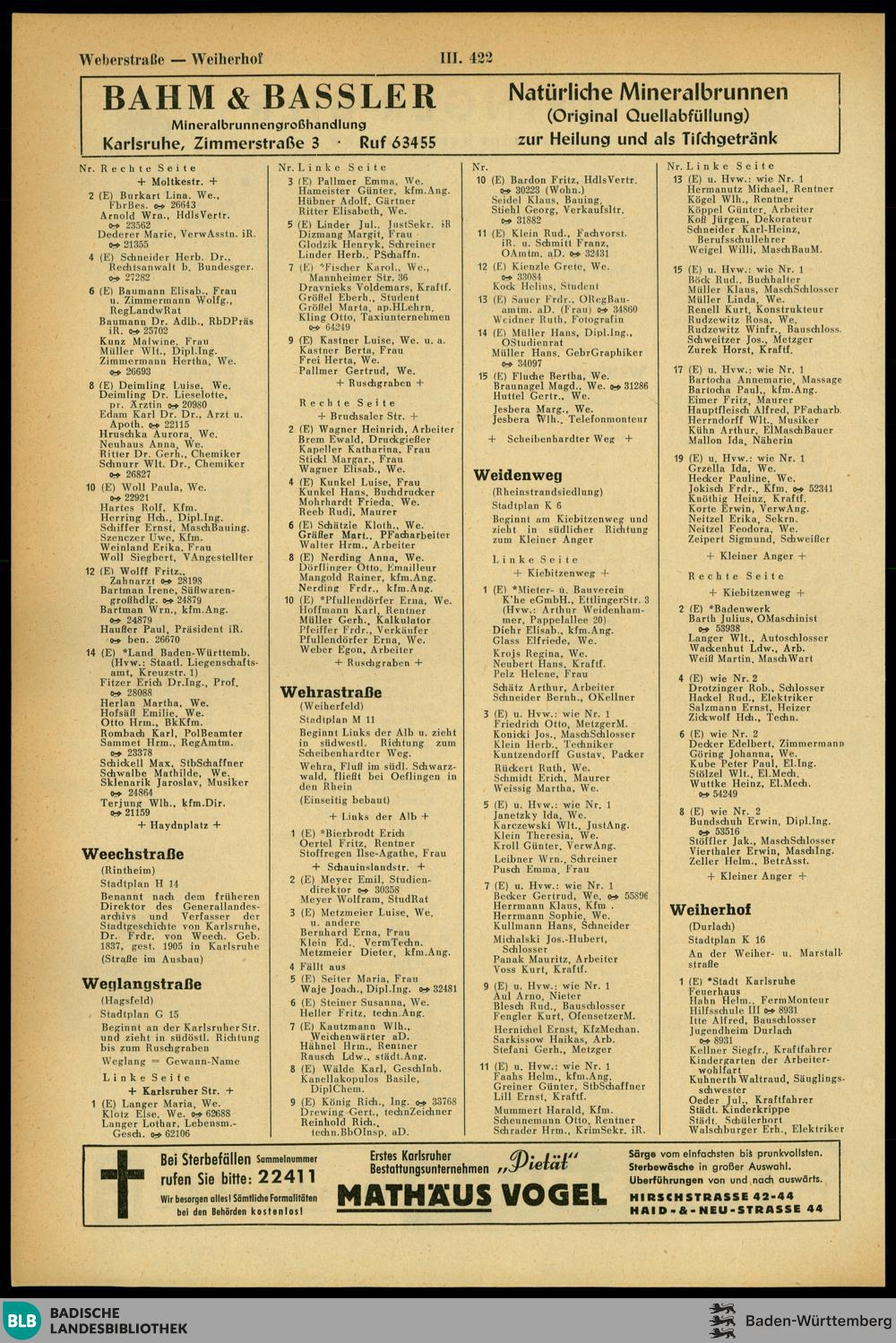 Adressbuch der Stadt Karlsruhe