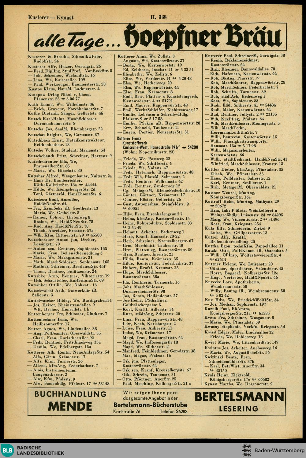 Adressbuch der Stadt Karlsruhe