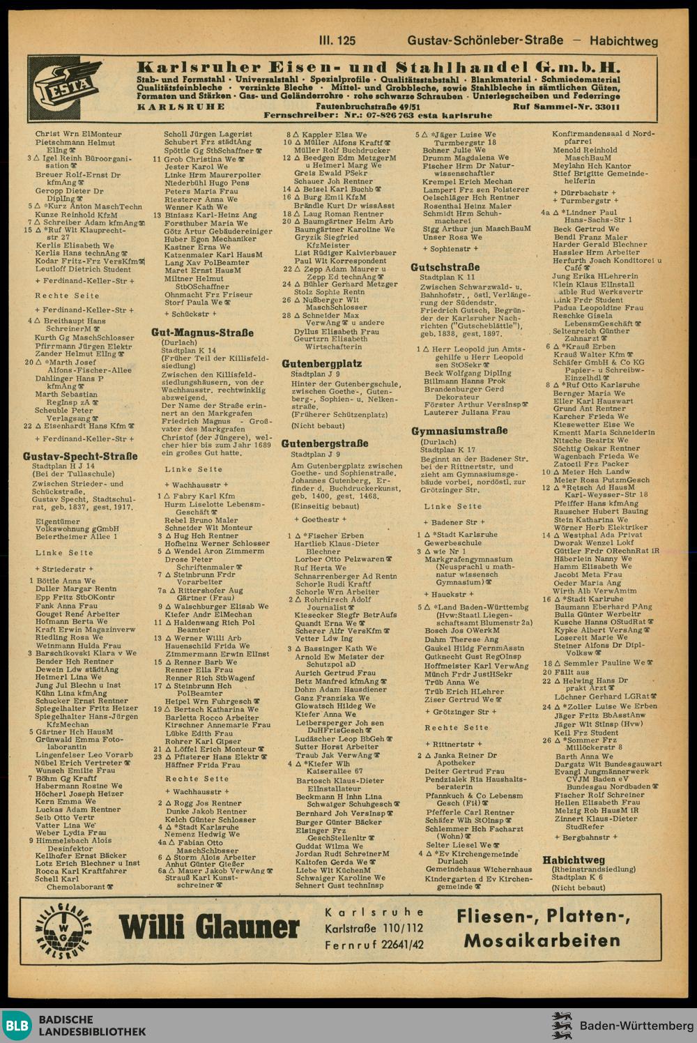 Adressbuch der Stadt Karlsruhe