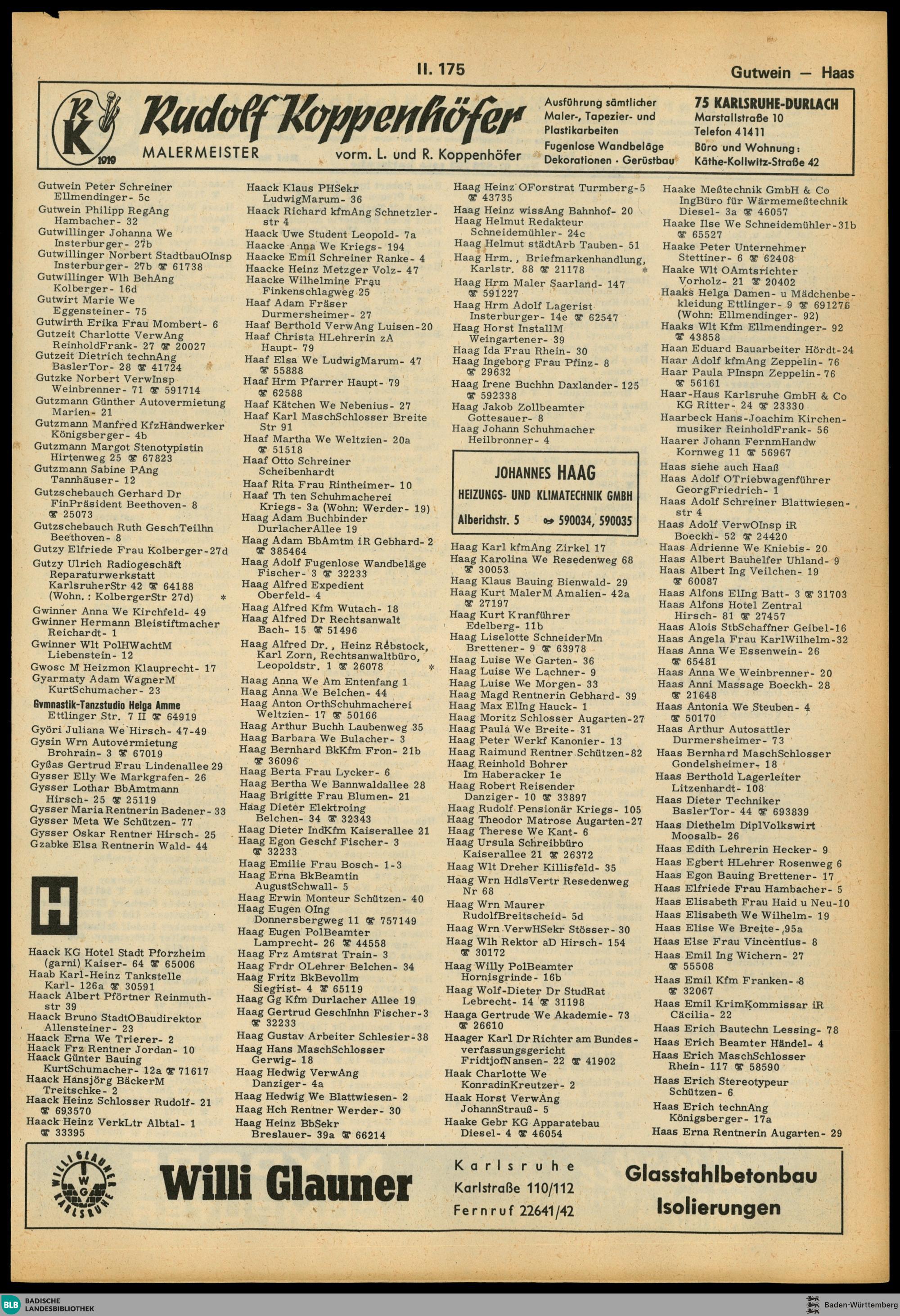 Abteilung II: Namensverzeichnis einschließlich der wichtigsten Anschriften aus der...