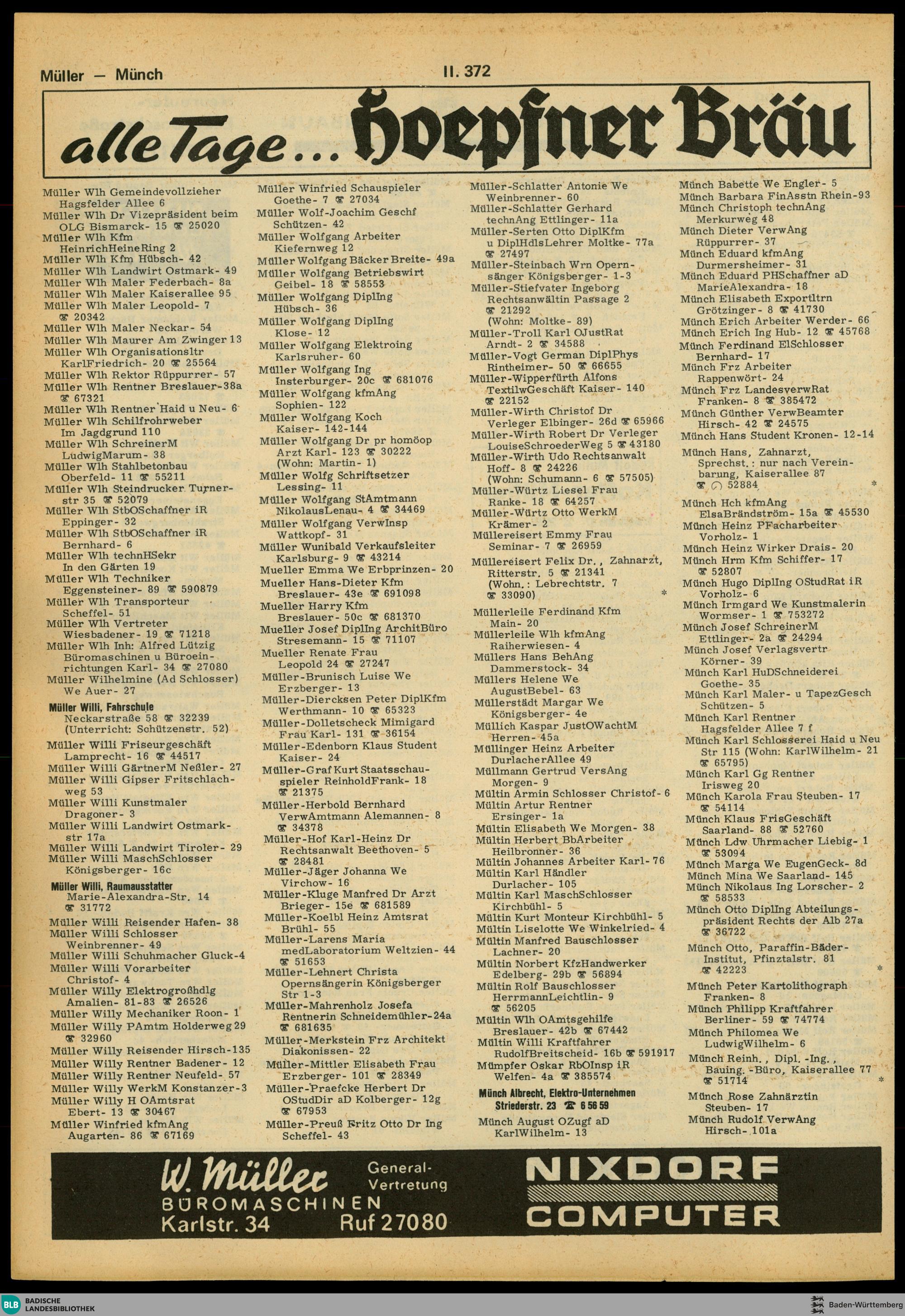 Abteilung II: Namensverzeichnis einschließlich der wichtigsten Anschriften aus der...