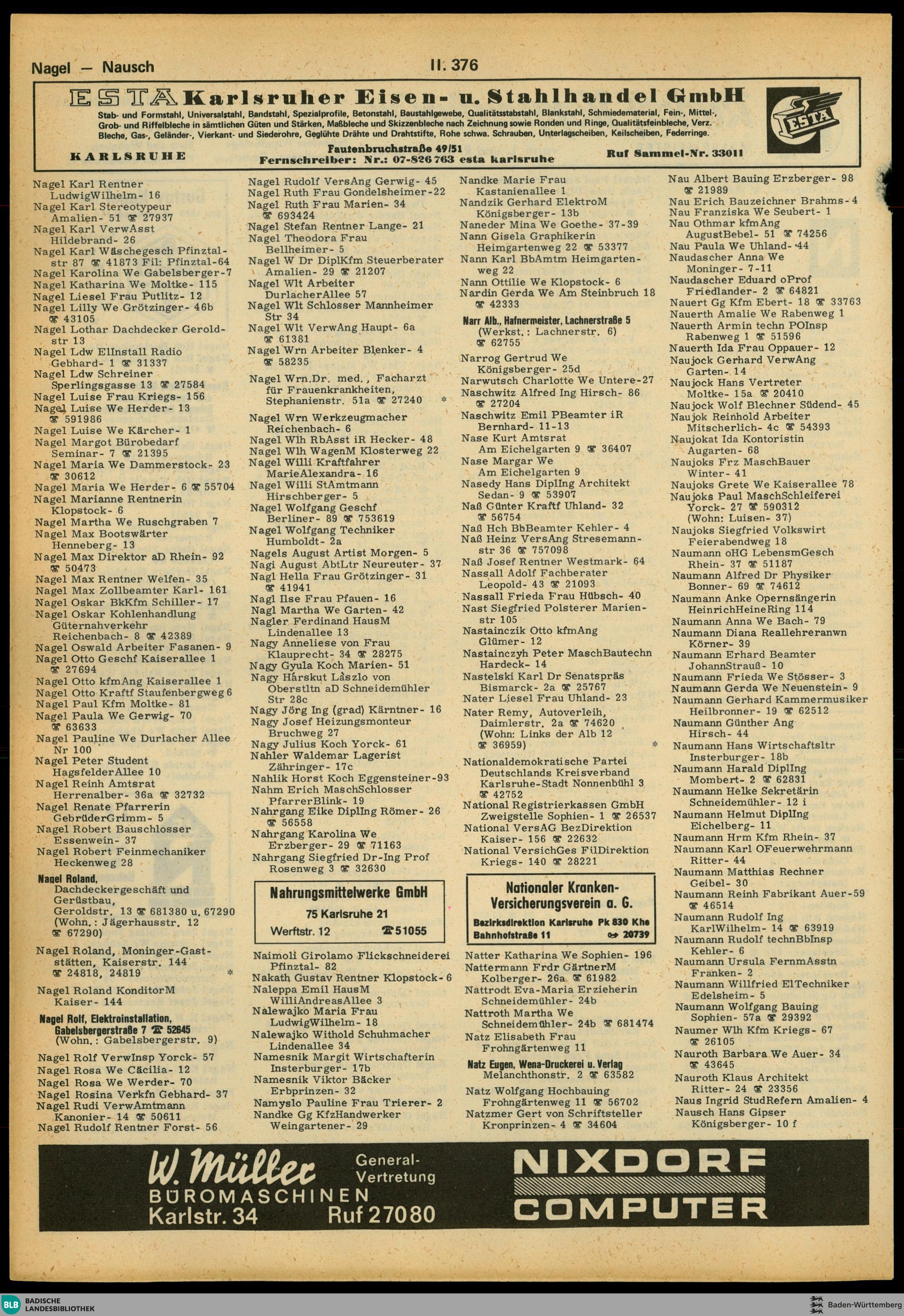 Abteilung II: Namensverzeichnis einschließlich der wichtigsten Anschriften aus der...