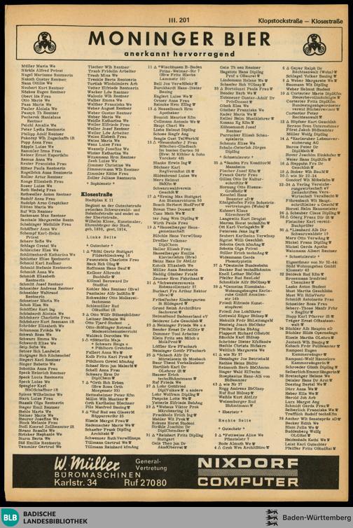 Abteilung III: Häuser- und Straßenverzeichnis mit Angabe der Hauseigentümer, Haushaltungsvorstände,...