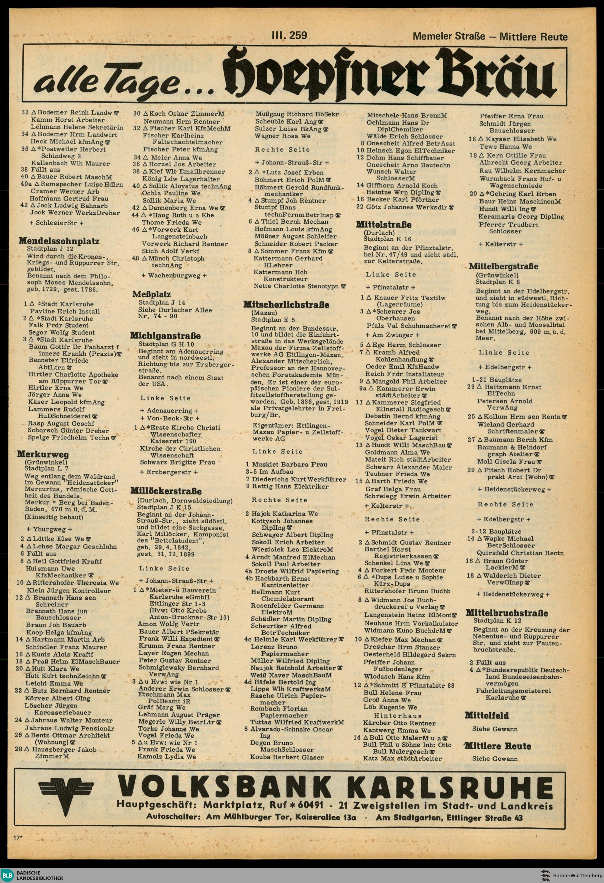 Adressbuch der Stadt Karlsruhe