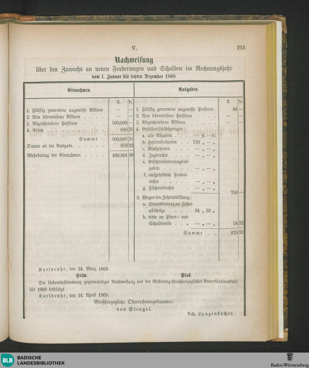 Nachweisung über den Zuwachs an neuen Forderungen und Schulden