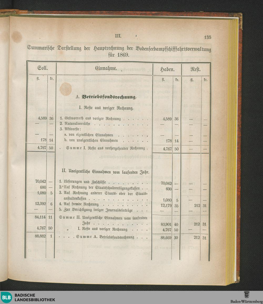 Summarische Darstellung der Hauptrechnung