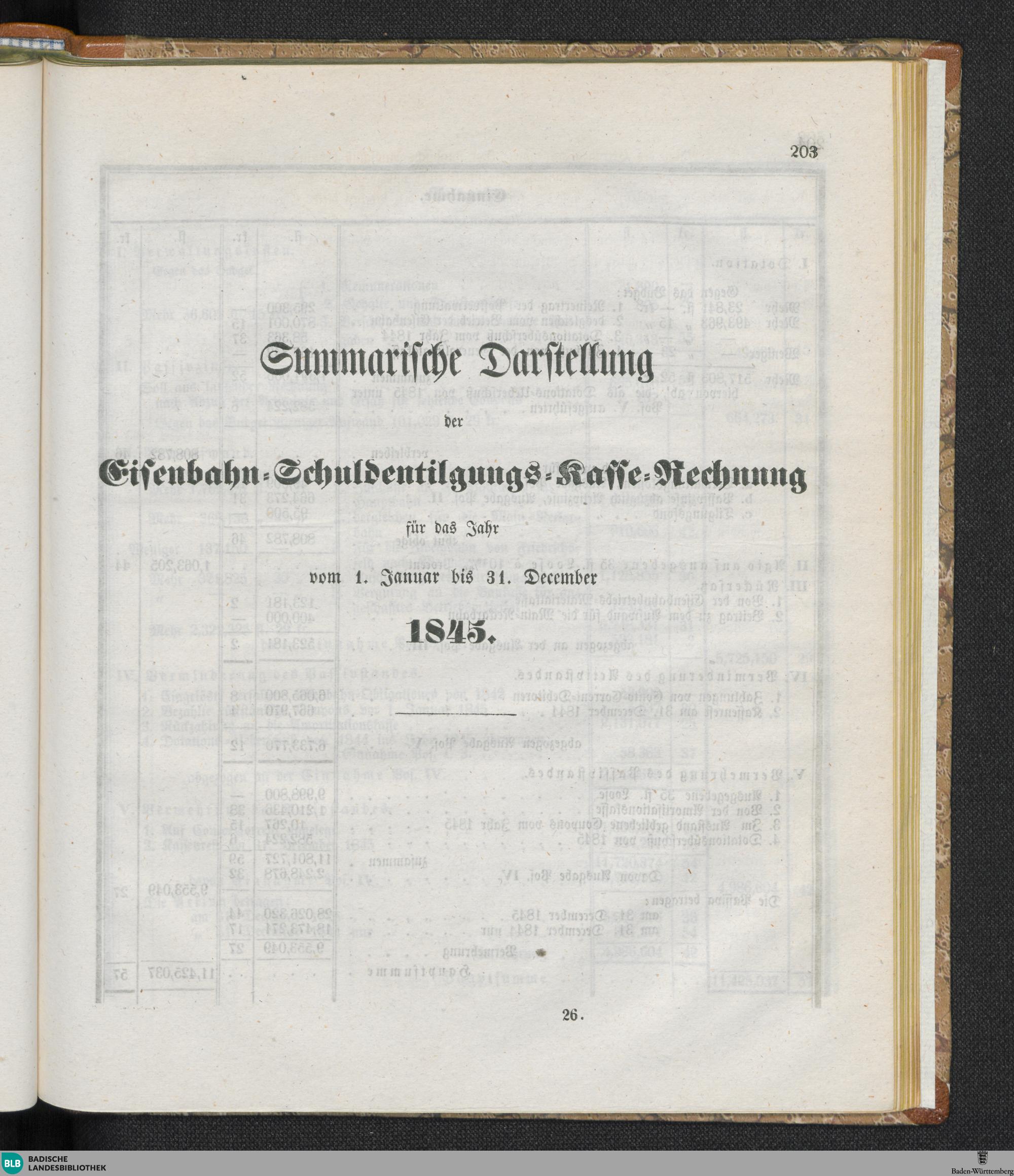 Summarische Darstellung der Eisenbahn-Schuldentilgungs-Kasse-Rechnung für das Jahr...
