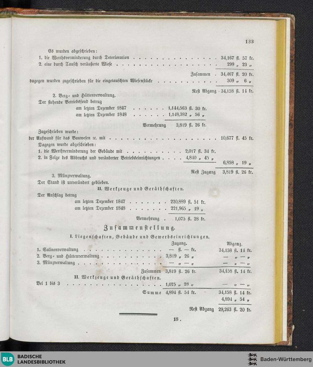 Darstellung der stehenden Betriebsfonds der Staatsgewerbscassen am letzten Dezember...