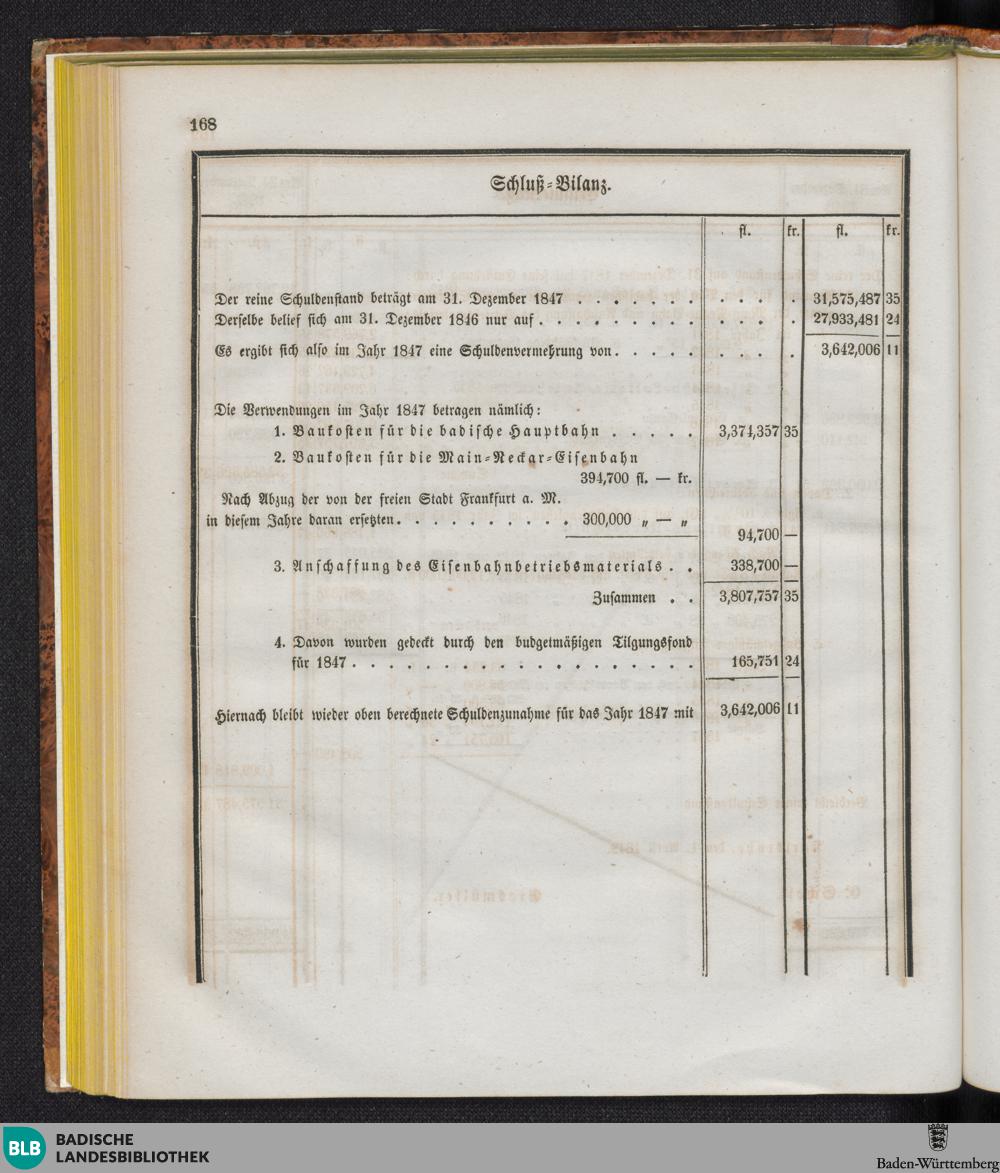 Summarische Darstellung der Eisenbahn-Schuldentilgungs-Kasse-Rechnung für das Jahr...
