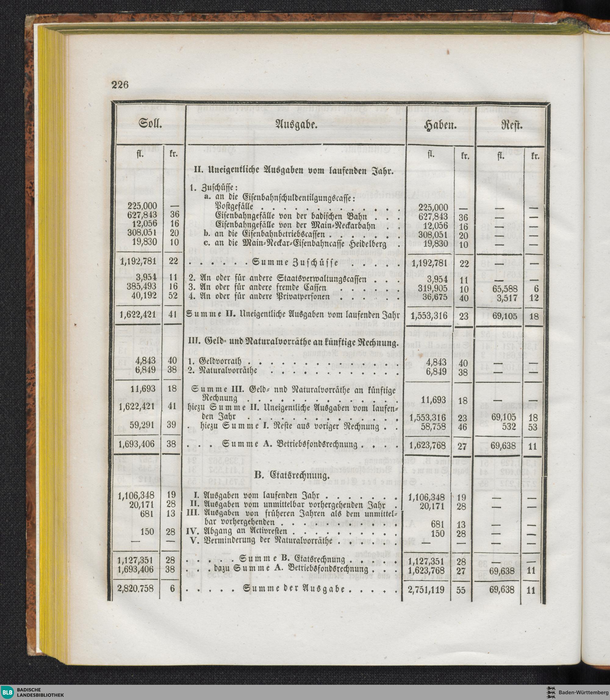 Summarische Darstellung der Hauptrechnung für 1848