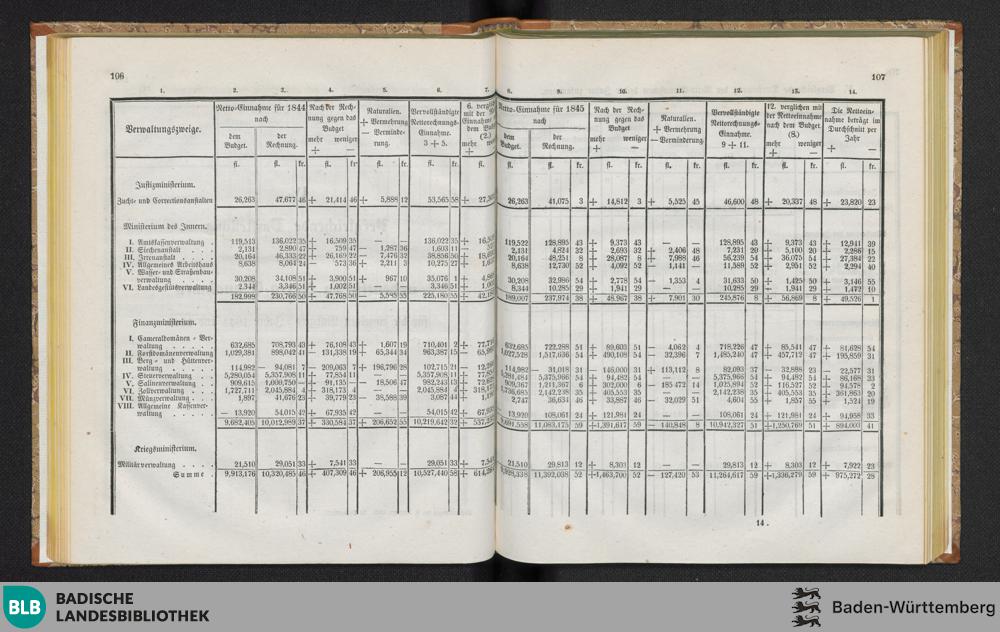 Vergleichende Darstellung für 1844 und 1845, mit Erläuterungen