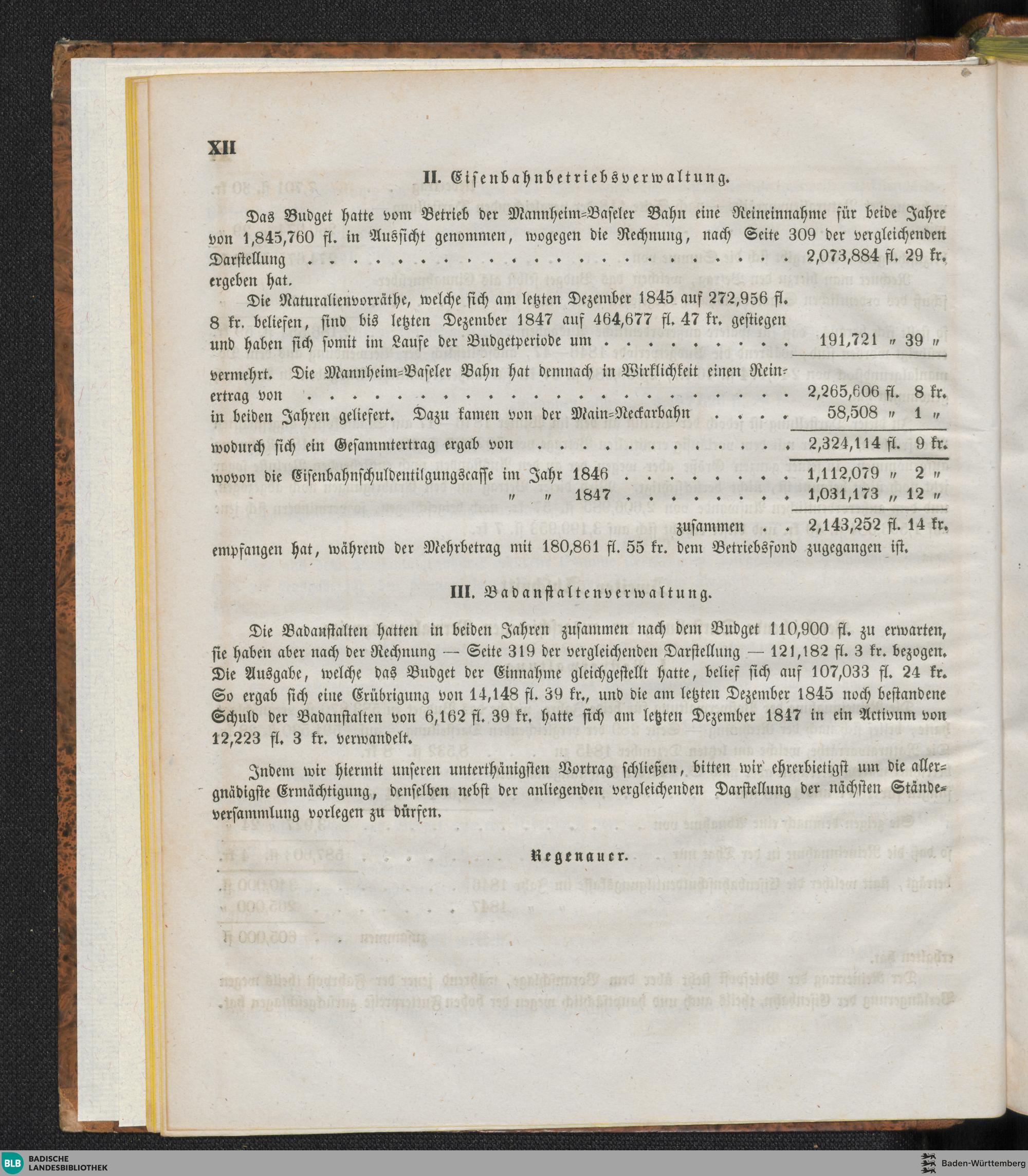 Bericht des Finanzministeriums an Seine Königliche Hoheit den Großherzog über die...
