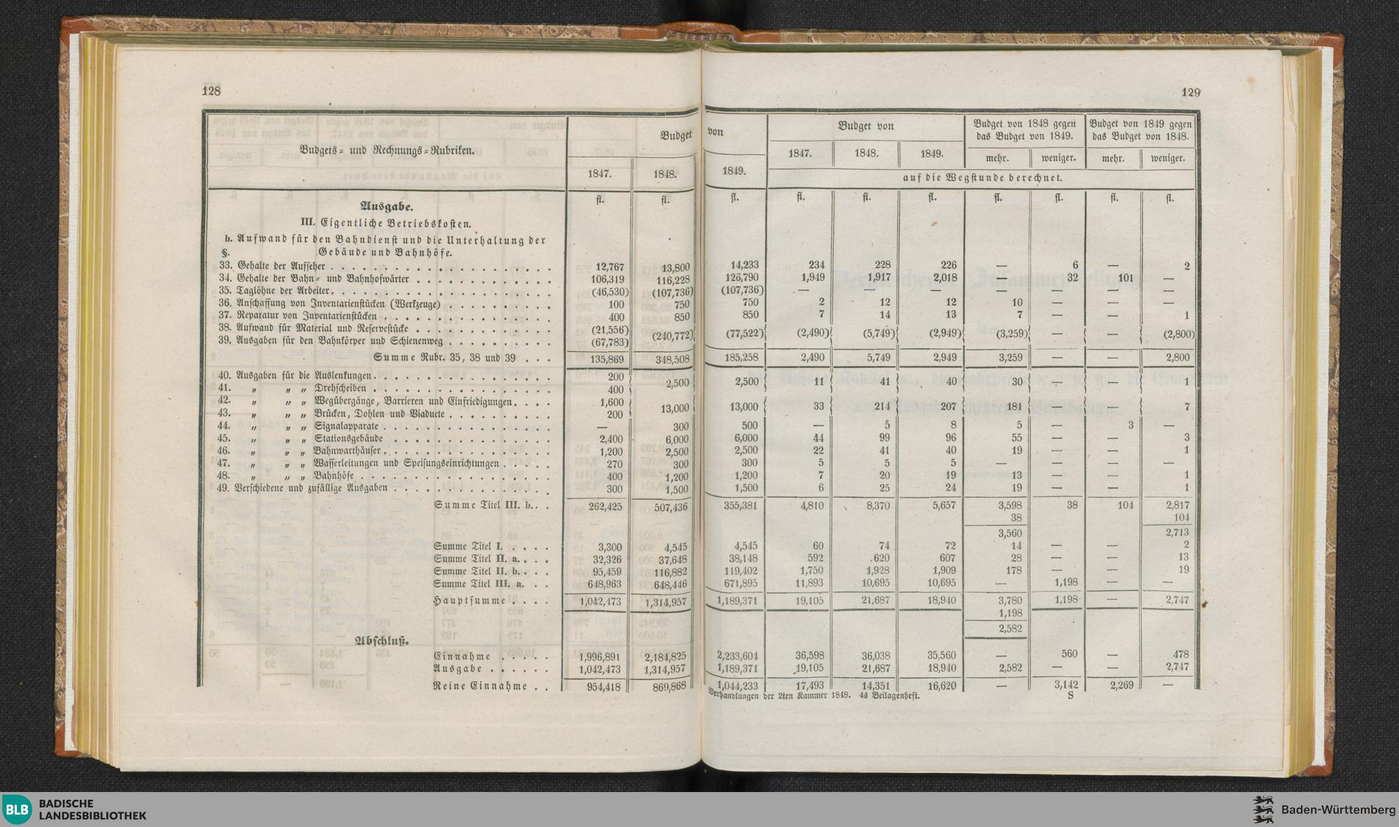 Beilage B. Vergleichende Uebersicht der Budgets der Eisenbahnbetriebsverwaltung von...