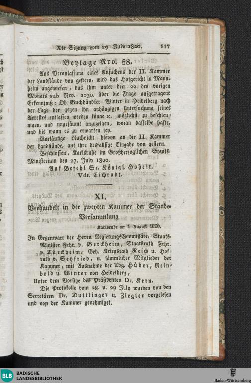 11. Sitzung (01.08.1820)