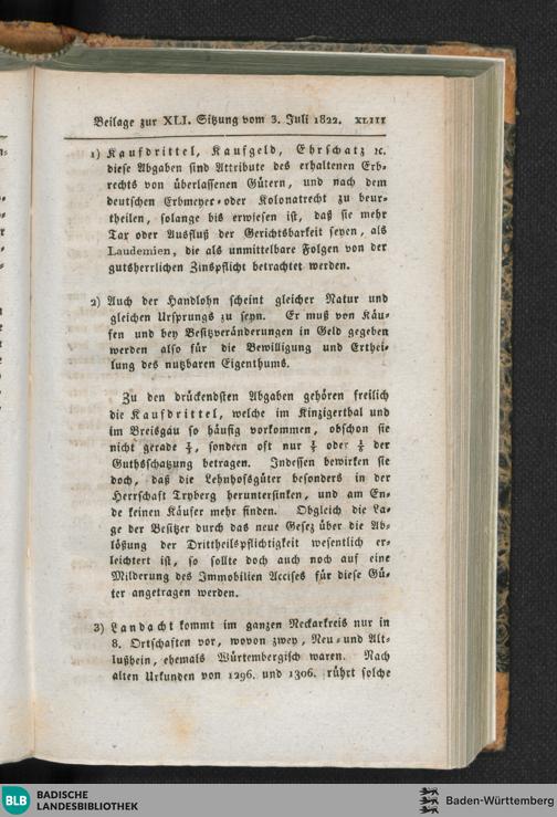 Beilagen zur 41. Sitzung (03.07.1822)