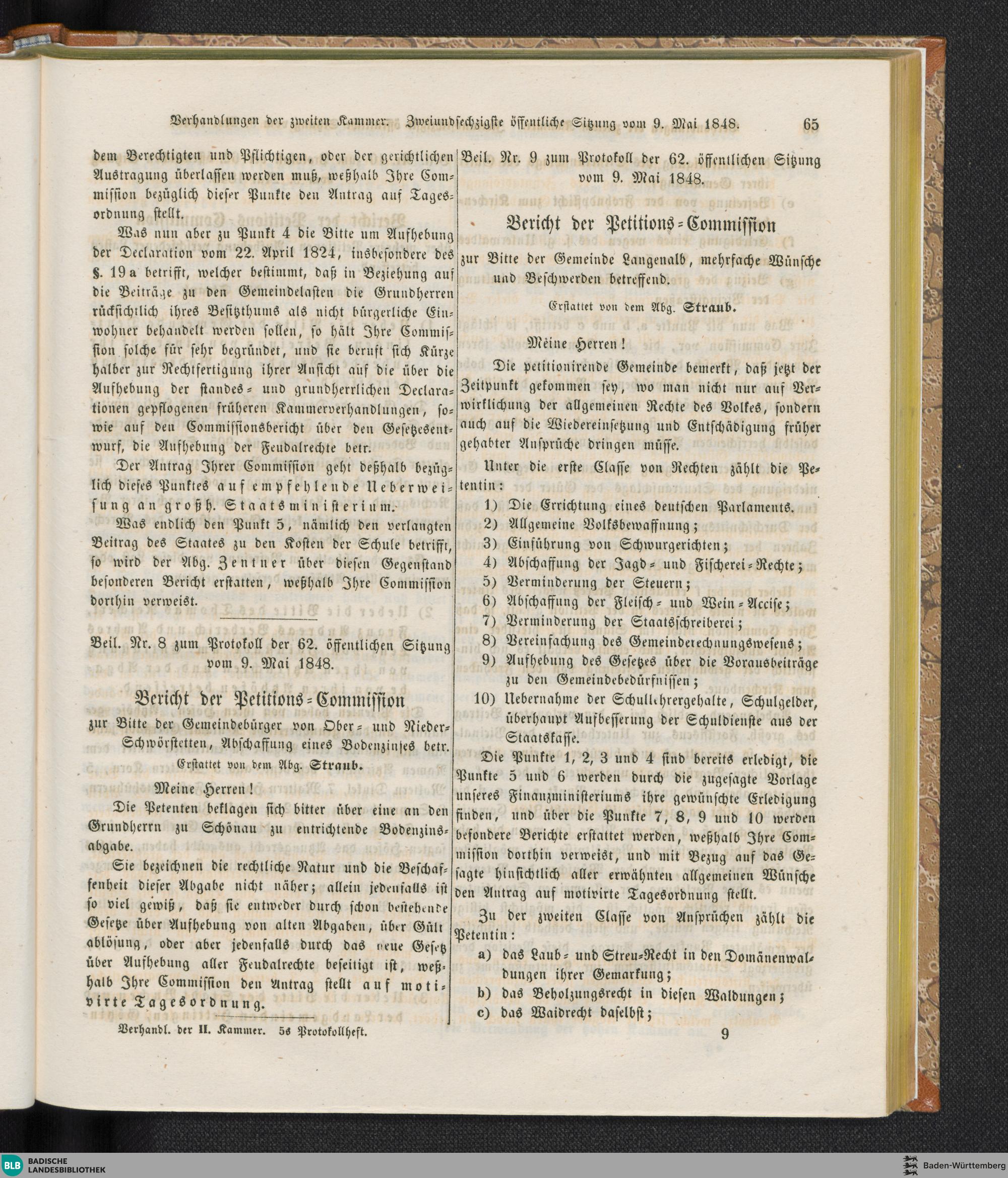 62. Sitzung (09.05.1848)
