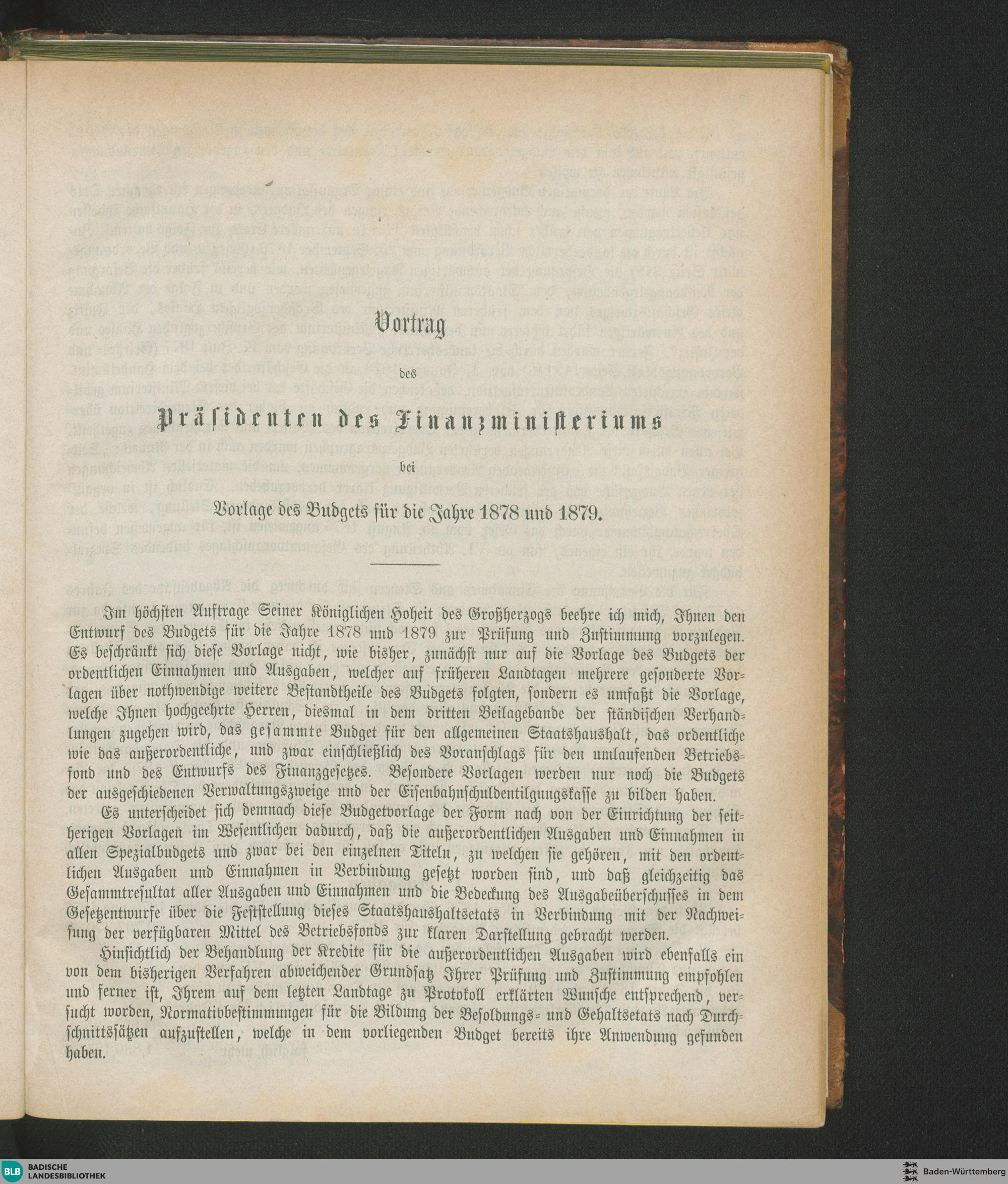 Vortrag des Präsidenten des Finanzministeriums bei Vorlage des Budgets für die Jahre...
