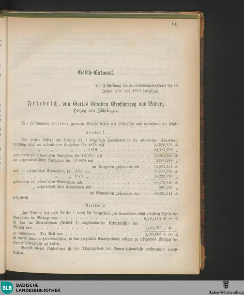 Gesetz-Entwurf, die Feststellung des Staatshaushalts-Etats für die Jahre 1878 und...