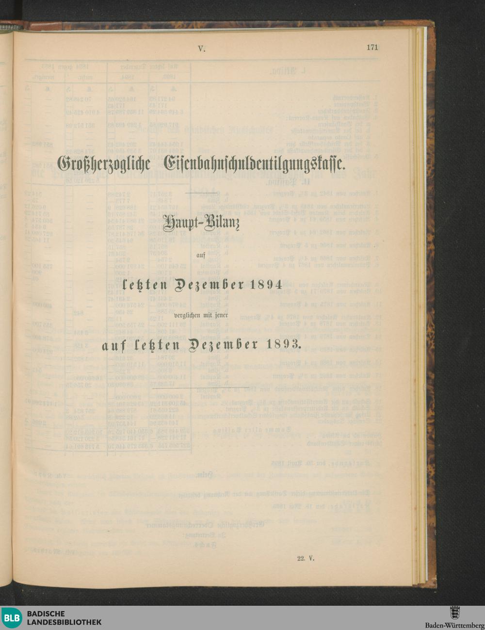 Großherzogliche Eisenbahnschuldentilgungskasse. Haupt-Bilanz auf letzten Dezember...