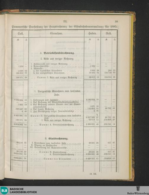 Summarische Darstellung der Hauptrechnung der Eisenbahnbauverwaltung