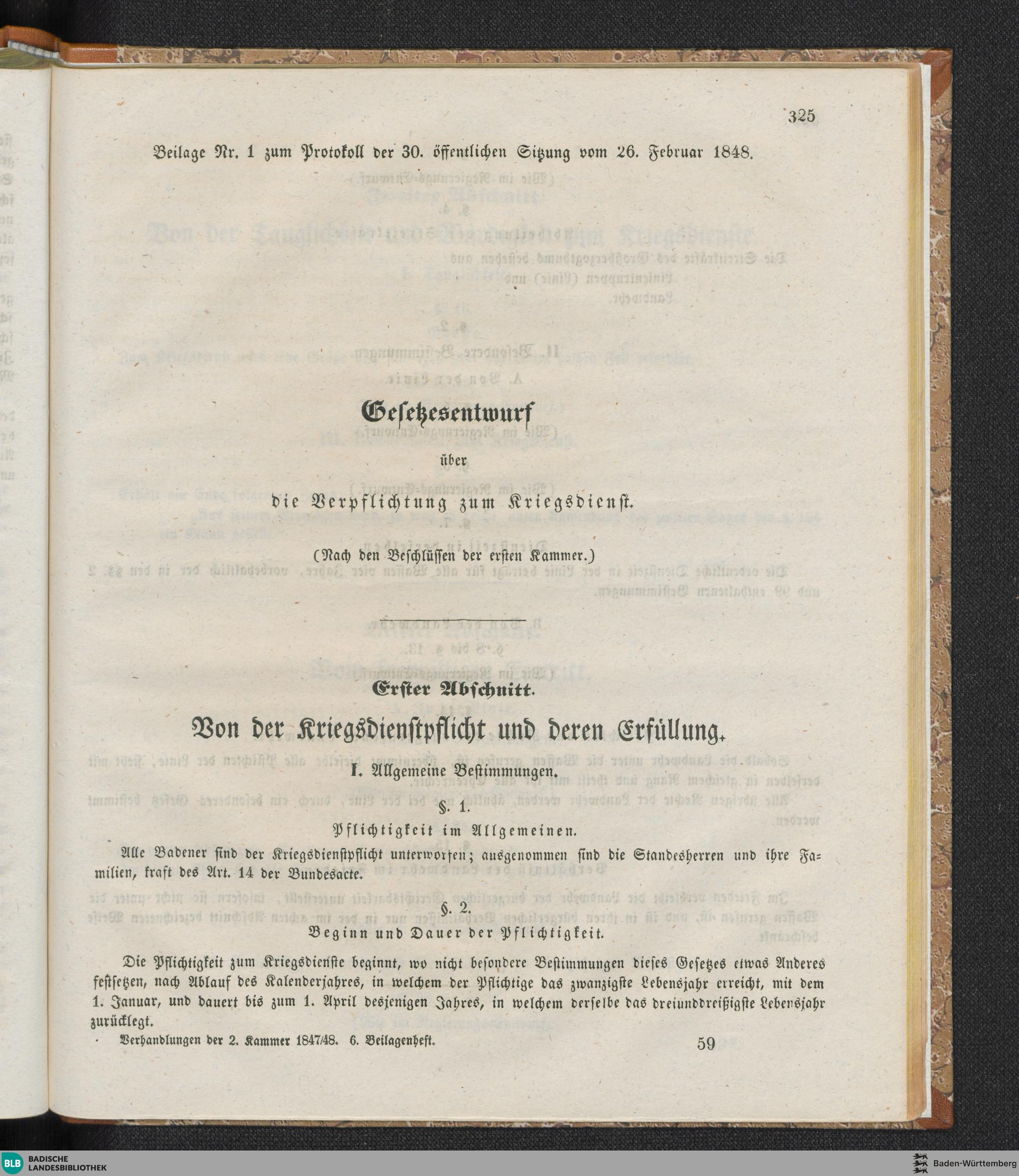 Beilagen zur 30. Sitzung (26.02.1848)