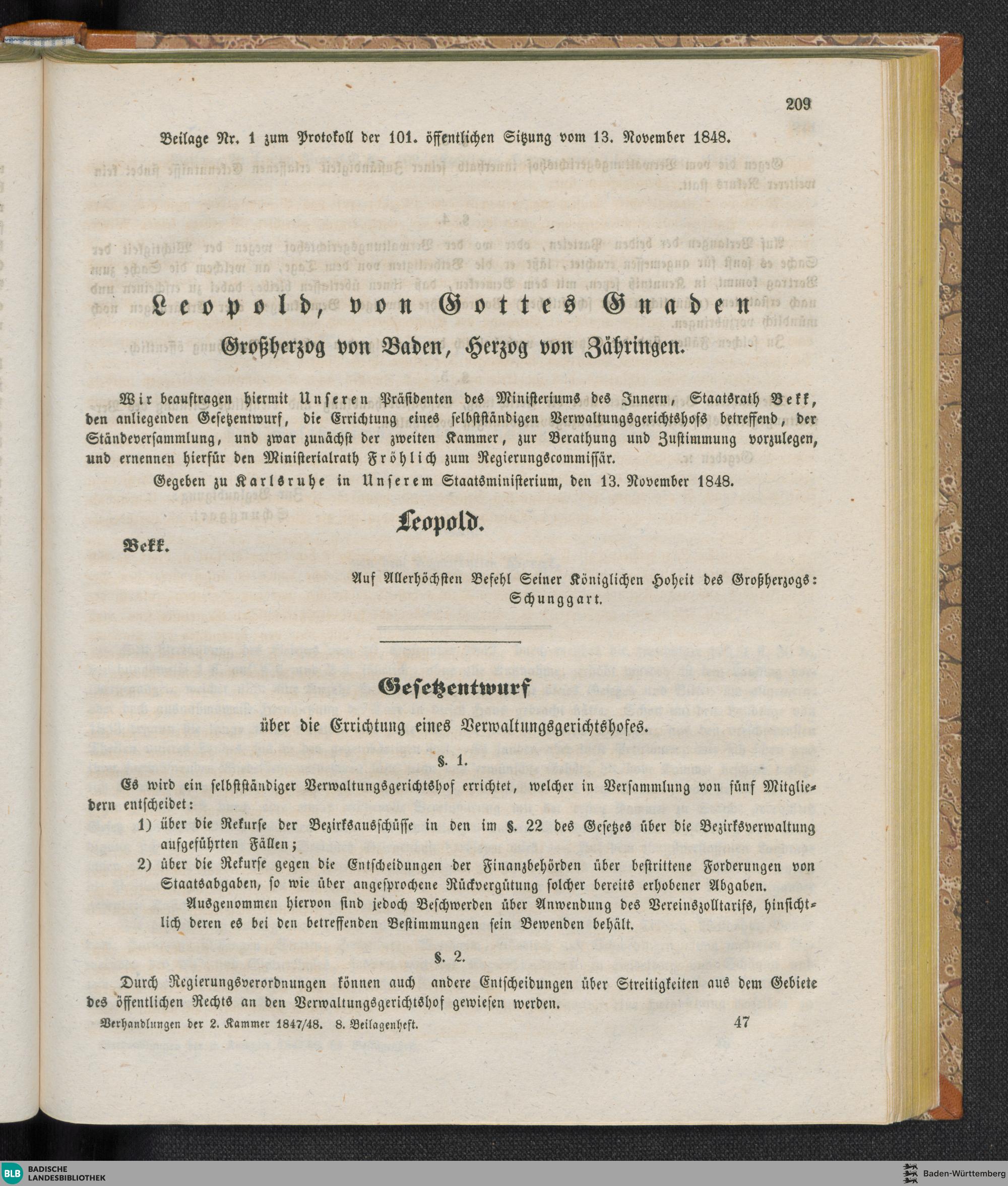 Beilagen zur 101. Sitzung (13.11.1848)