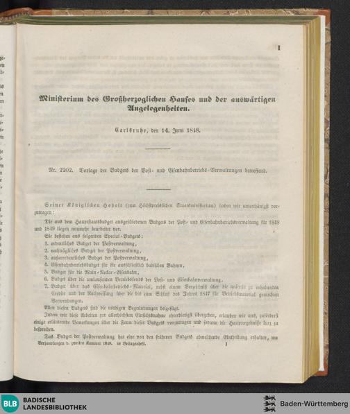 Ministerium des Großherzoglichen Hauses und der auswärtigen Angelegenheiten. Vorlage...