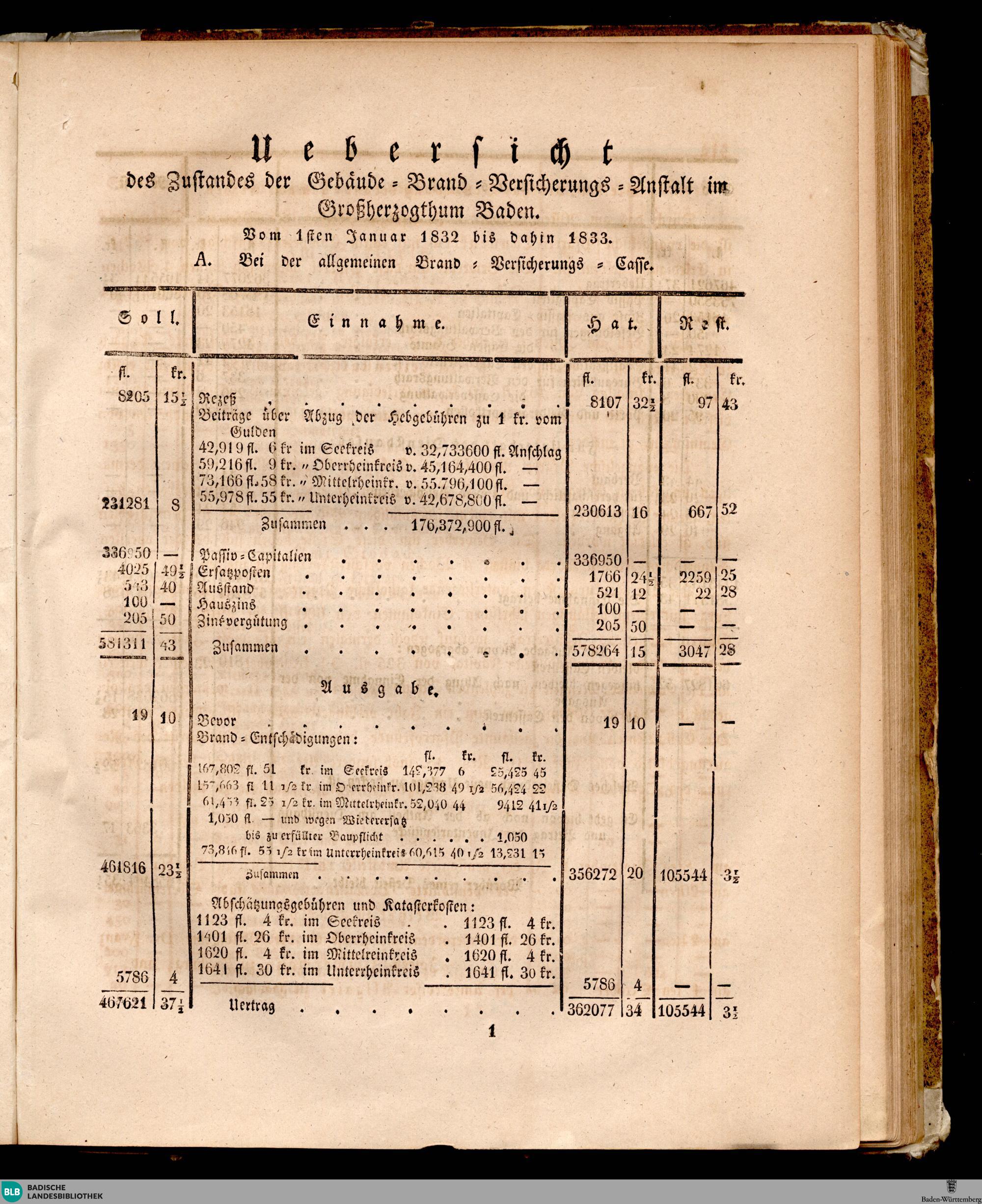 Uebersicht des Zustandes der Gebäude-Brand-Versicherungs-Anstalt im Großherzogthum...