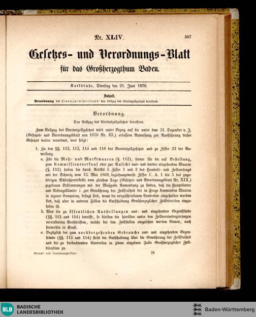 Badische Gesetz- und Verordnungsblätter - digitalisiert