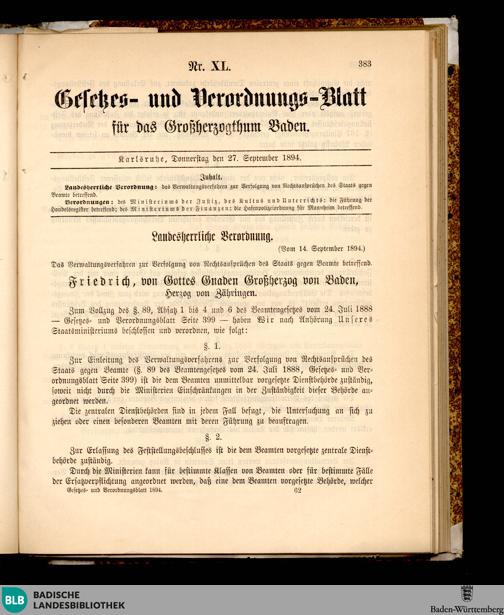 Badische Gesetz- und Verordnungsblätter - digitalisiert