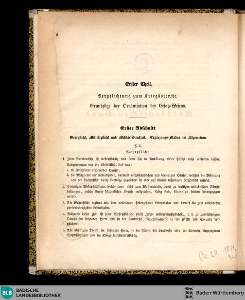 Militär-Ersatz-Instruction für den Norddeutschen Bund vom 26. März 1868