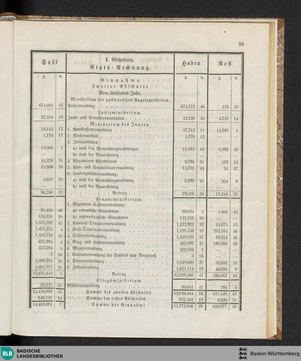 Zweite Abtheilung. Hauptstaats-Rechnungen für 1836 und 1837 und Darstellungen der...