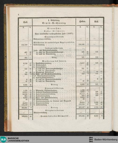 Haupt-Staats-Rechnung für 1838