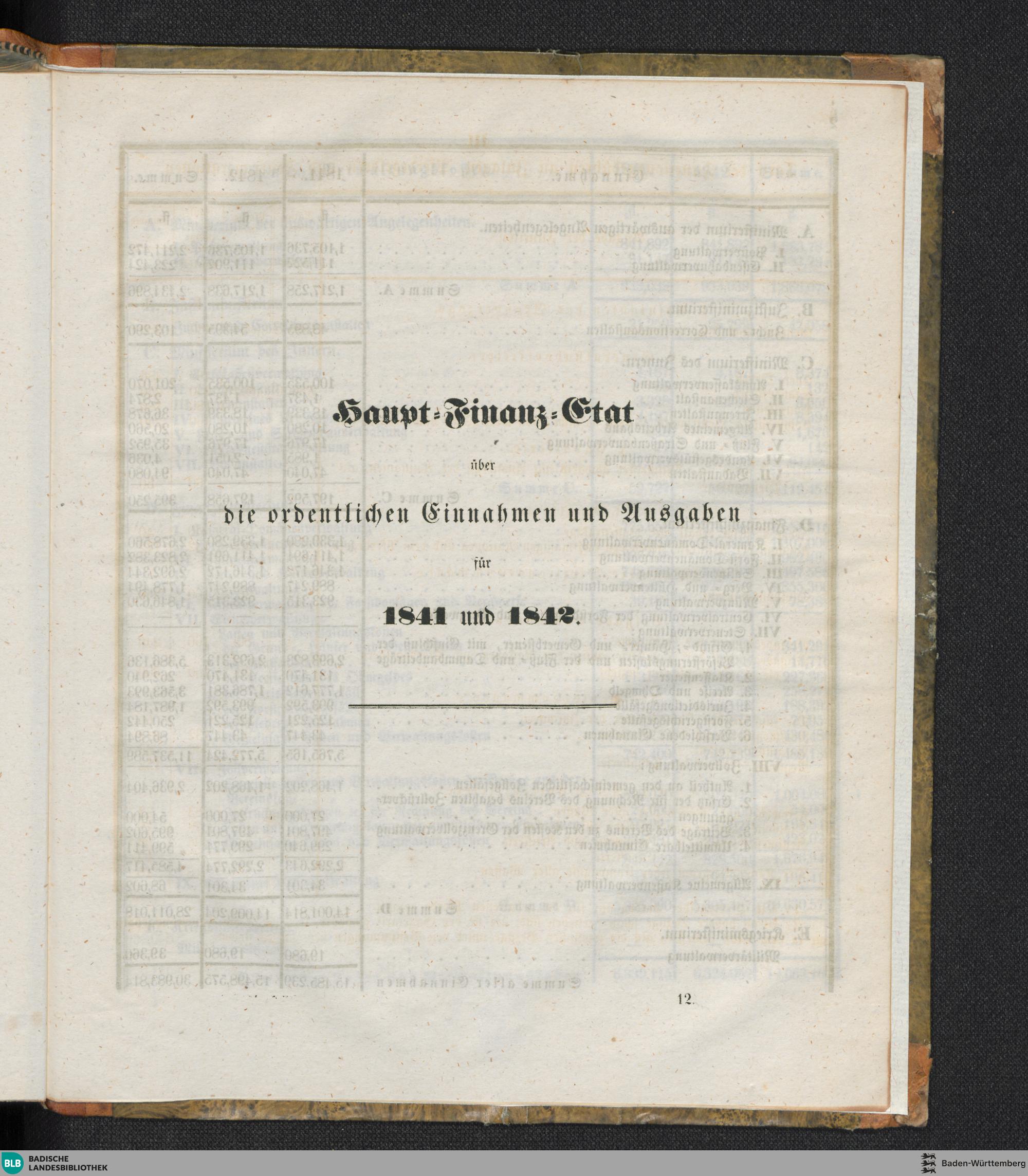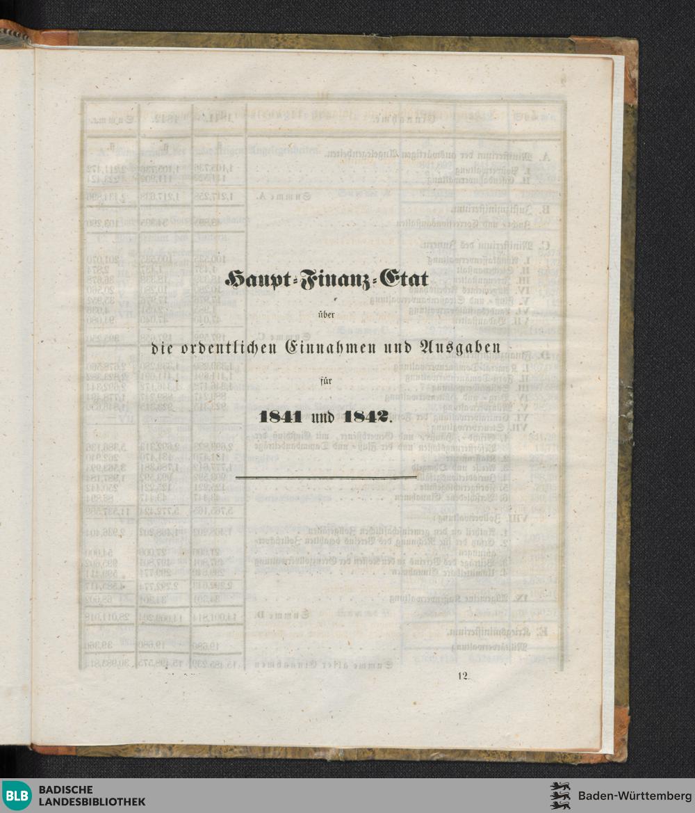 Haupt-Finanz-Etat über die ordentlichen Einnahmen und Ausgaben für 1841 und 1842