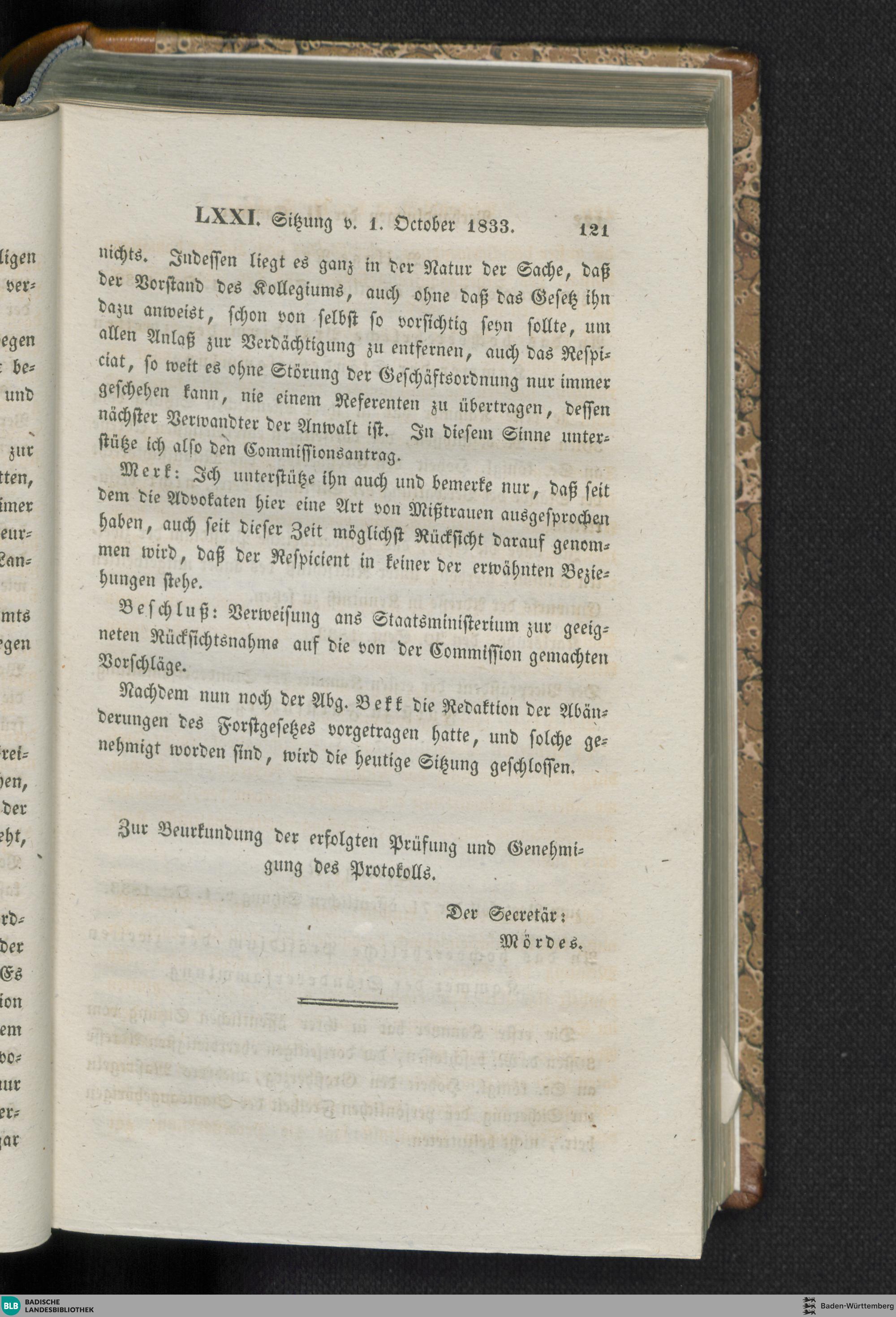 71. Sitzung (01.10.1833)