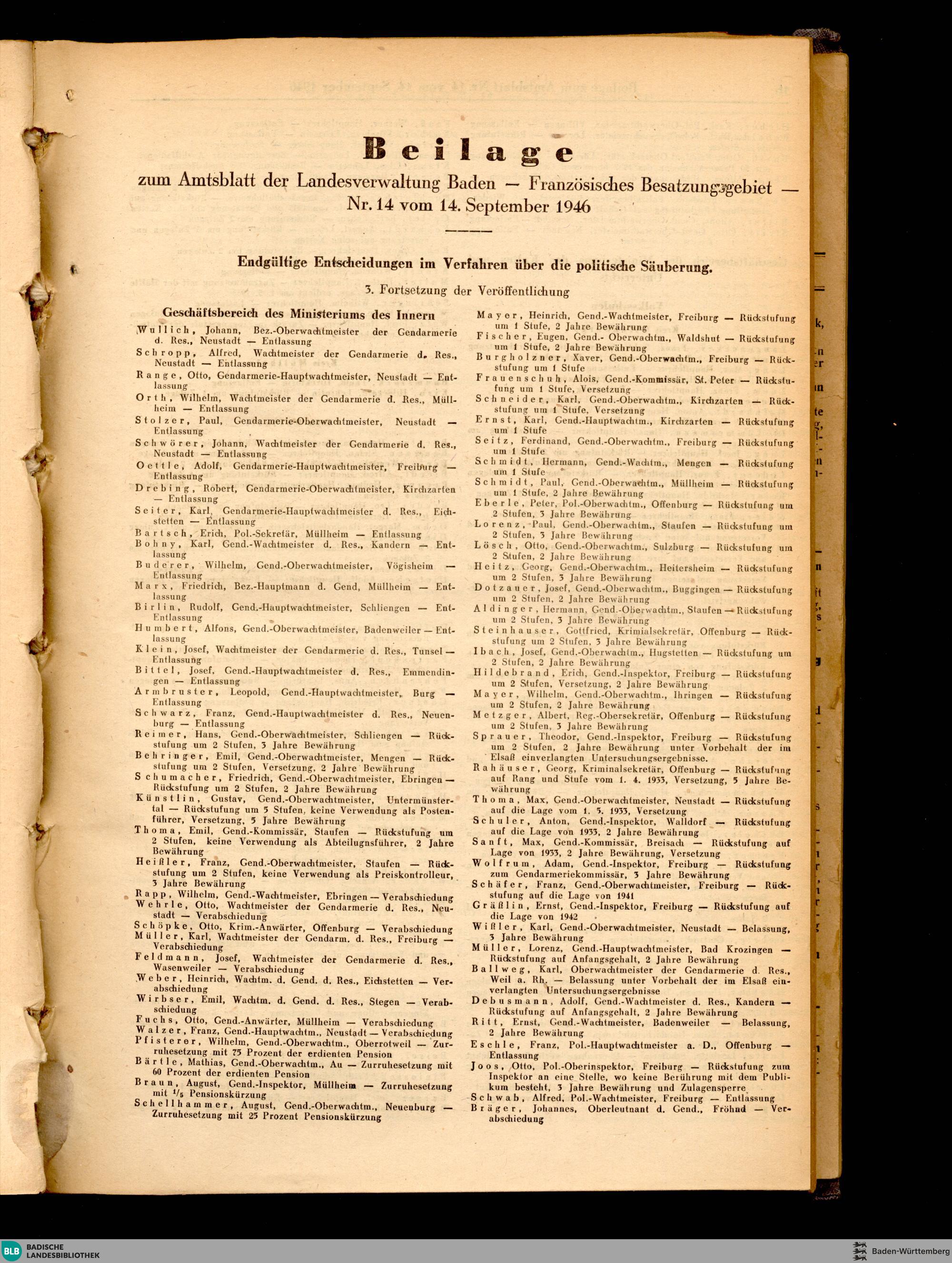 Beilagen zum Amtsblatt der Landesverwaltung Baden - Französisches Besatzungsgebi...
