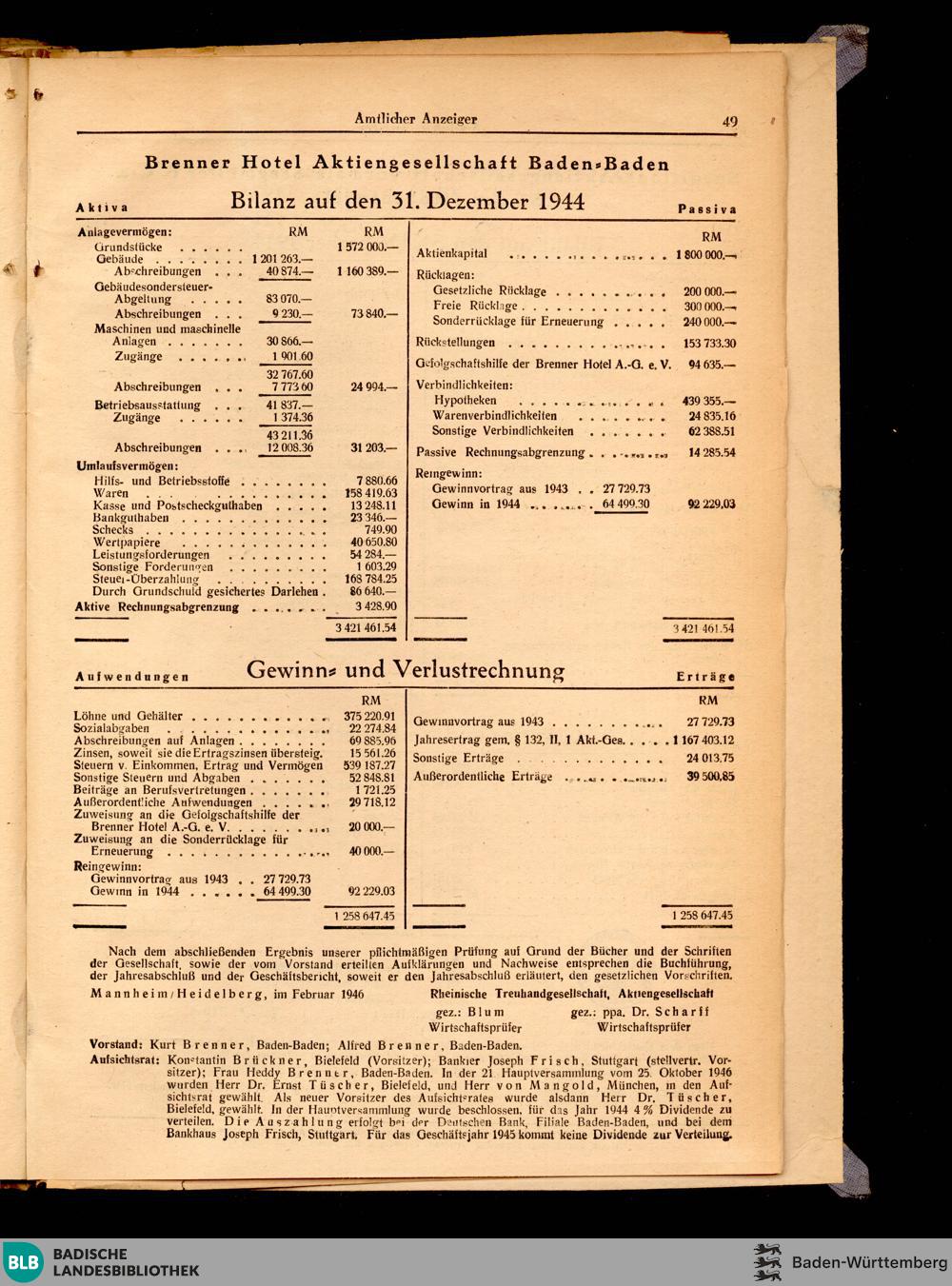Beilagen zum Amtsblatt der Landesverwaltung Baden - Französisches Besatzungsgebi...