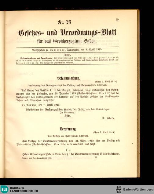 Badische Gesetz- und Verordnungsblätter - digitalisiert