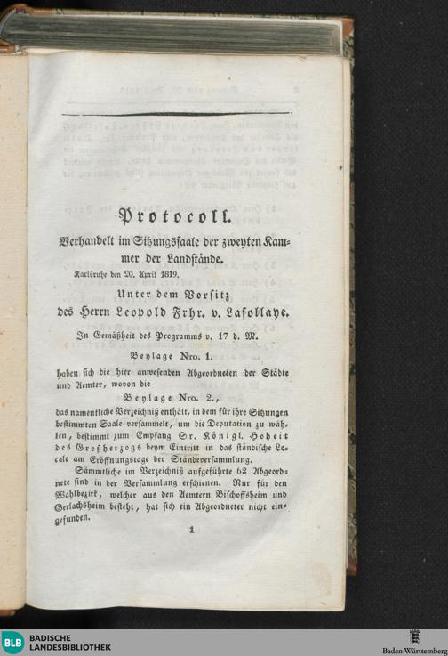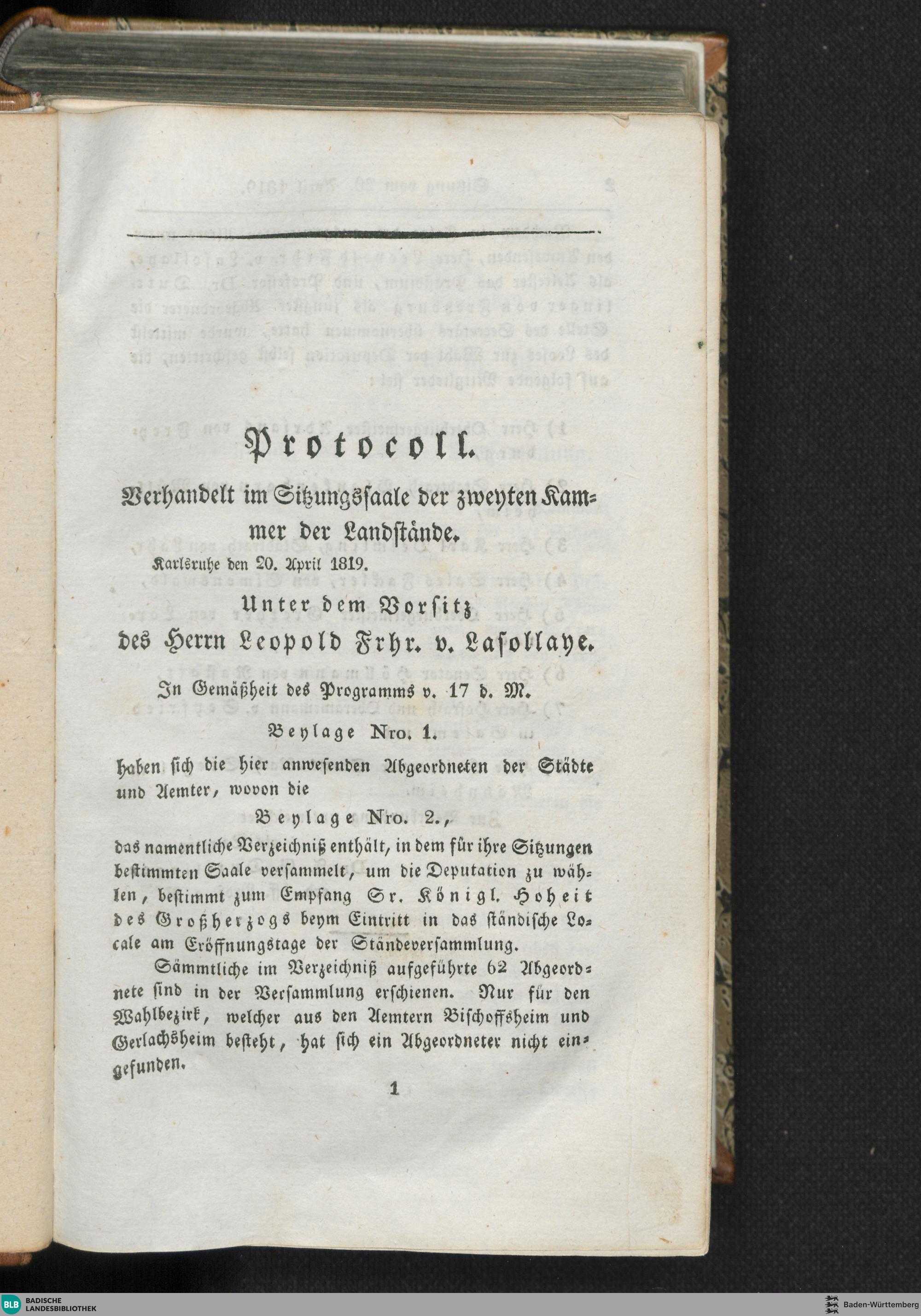 1. Sitzung (20.04.1819)