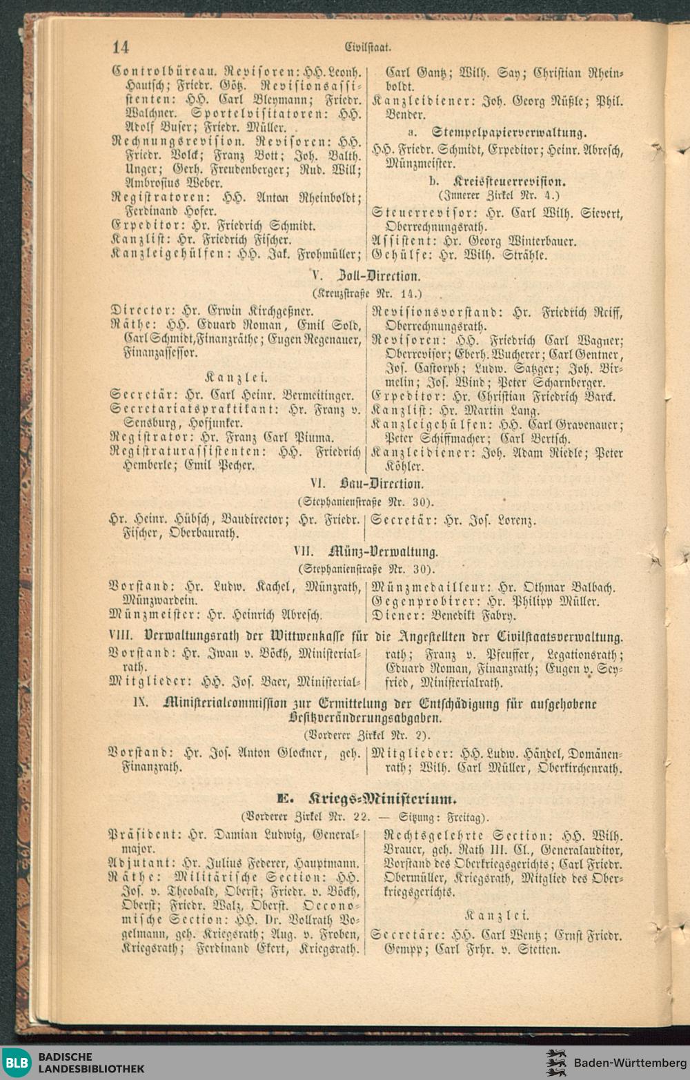 Adresskalender für die Residenzstadt Karlsruhe