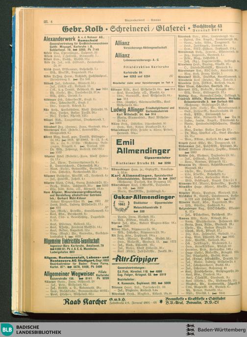 Adressbuch der Gau- und Landeshauptstadt Karlsruhe